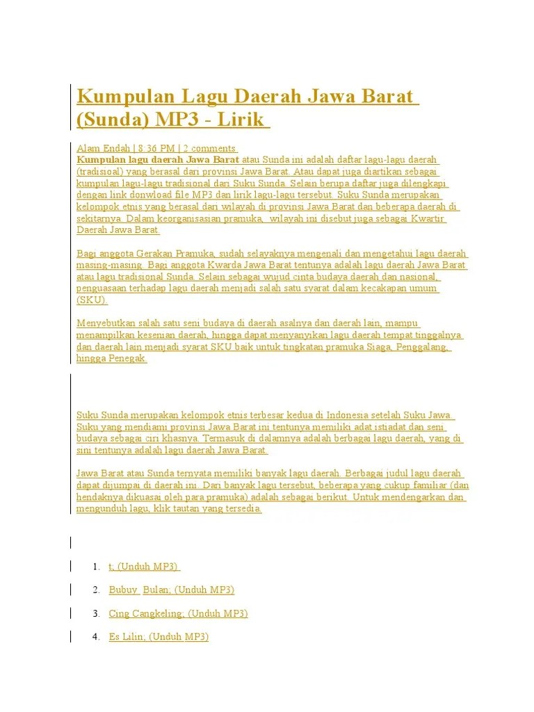 Berikut lirik lagu suwe ora jamu, lagu daerah khas jawa tengah dan diy:. Lirik dan alunan musiknya sangat khas karena dianggap sangat merakyat. Indonesia sangat terkenal sebagai negara yang kaya. Langsung saja, berikut kami sajikan 50 kumpulan lirik lagu daerah . Bahkan, berkat keanekaragaman lagu tradisional ini, indonesia sudah sering kali.